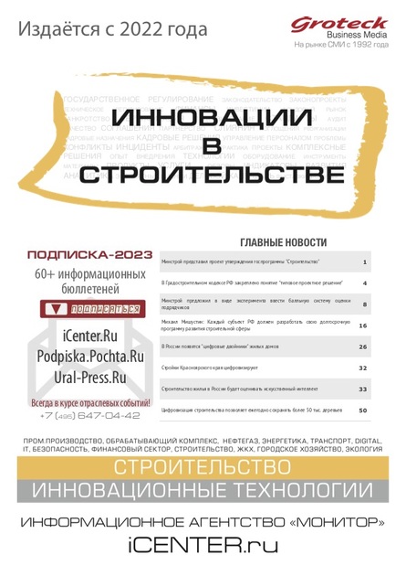 Производителям строительных материалов и компонентов; архитекторам; инженерам и проектировщикам, строителям и девелоперам. Регулирование. От BIM к цифровым двойникам. 3D-печать. Модульное строительство. Экологичные материалы. Энергоэффективность. Искусственный интеллект и машинное обучение. Новые архитектурные подходы. Аналитика и экспертные мнения. www.icenter.ru