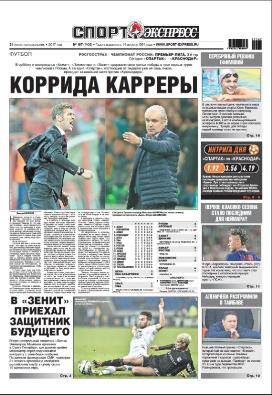 Федеральная спортивная газета. Выходит с понедельника по пятницу.