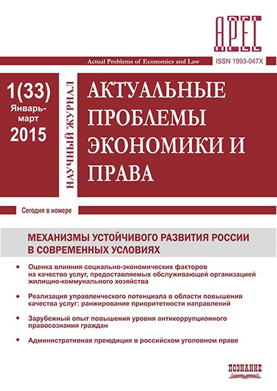 RUSSIAN JOURNAL OF ECONOMICS AND LAW / АКТУАЛЬНЫЕ ПРОБЛЕМЫ ЭКОНОМИКИ...