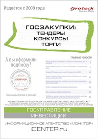 Издается с 2009г. Руководителям предприятий, руководителям отделов продаж, юристам, специалистам по государственному заказу. Регулирование: законодательные акты, законопроекты, отраслевое регулирование, региональные и муниципальные программы.  HR. Кадровые решения. Персоны. Опыт. Практические решения: прозрачность госзакупок. IT-решения, практика госзакупок, финансирование участников программы госзакупок. Проверки. Нарушения. Арбитраж: надзорная практика, арбитражная практика. Индикаторы развития. Экспертные оценки. Разъяснения регуляторов. Информационный бюллетень. www.icenter.ru