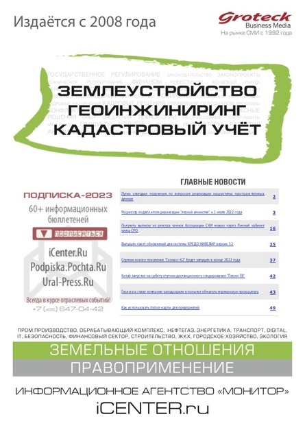 Издается с 2008г. Специализированное издание для всех, кто профессионально занимается вопросами инженерных изысканий и землеустройства. Инвесторам. Руководителям предприятий и объектов малого предпринимательства. Регулирование: законодательные акты и инициативы, отраслевое регулирование, региональное и муниципальное регулирование. Управление: соглашения и партнерства, профессиональные сообщества, реорганизации, HR, кадровые решения и назначения, персоны. Проекты. Комплексные решения. Опыт внедрения: российский опыт и практика, зарубежные решения и опыт внедрения. Технологии. Оборудование. Продукты. Услуги. Индикаторы развития: проблемы, конфликты, инциденты, арбитражная практика, аналитика, обзоры, экспертные оценки. Земельно-кадастровый практикум. www.icenter.ru