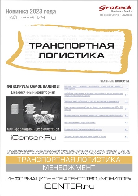 Издается с 2005г. Руководителям департаментов безопасности, экономической безопасности, кадровых и юридических служб компаний-перевозчиков всех видов транспорта, вокзалов, аэропортов, морских и речных портов, таможенных служб, почтовых и логистических компаний, складов и терминалов. Регулирование: российское регулирование, регулирование за рубежом. Корпоративные события: соглашения и партнерства, профессиональные сообщества, HR, кадровые решения, персоны, сертификация, лицензирование, стандарты. Транспортный надзор: Ространснадзор, другие надзорные органы. Проекты. Комплексные решения. Опыт внедрения: автомобильный транспорт, железнодорожный транспорт, авиационный транспорт, водный транспорт. Технологии. Оборудование. Научные разработки. Индикаторы развития. Аналитика. Обзоры. www.icenter.ru