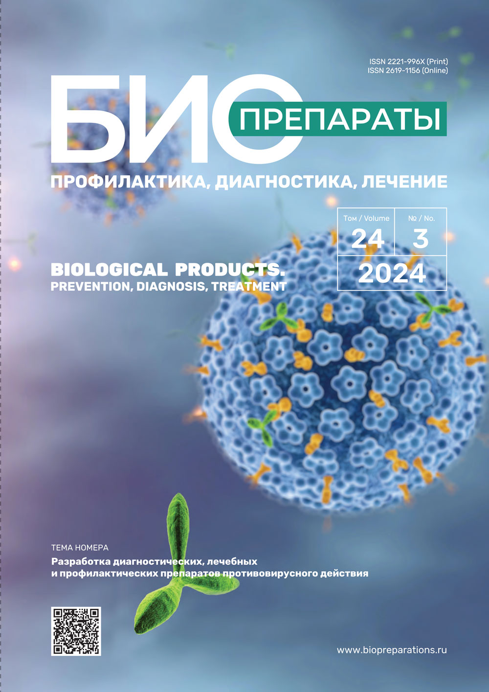 «БИОпрепараты. Профилактика, диагностика, лечение» – научно-практический рецензируемый журнал открытого доступа, выпускаемый в печатной и онлайн-версиях. Цель журнала: освещение актуальных вопросов разработки регуляторных процедур, стандартизации, контроля качества, производства терапевтических, профилактических и диагностических биологических лекарственных препаратов, биомедицинских клеточных продуктов и их применения, включая клинические аспекты, для профилактики, диагностики и лечения инфекционных заболеваний, изучения аллергических и иммунопатологических процессов. Целевая аудитория: биотехнологи, иммунологи, вирусологи, микробиологи, специалисты в области молекулярной и клеточной биологии, фармакологи, представители экспертных и регуляторных учреждений, специалисты в области биофармацевтической индустрии. Учредитель и издатель: ФГБУ «Научный центр экспертизы средств медицинского применения» Министерства здравоохранения Российской Федерации. Периодичность: 4 раза в год.