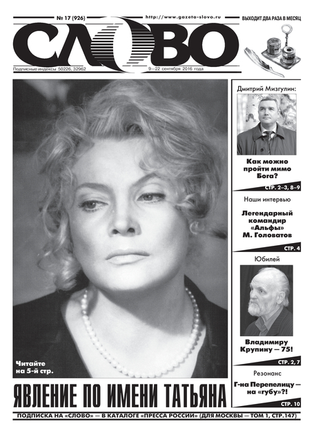 "Слово" - высококачественное издание. Выходит 1 раза в месяц. Это - точный прогноз в политике, экономике и международных делах. Это - сенсации, проверенные фактами и здравым смыслом. Это - разговор с читателем на злободневные темы. Это - настоящая газета.