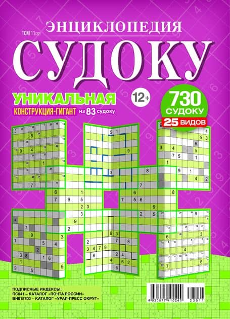 Рекордное количество эксклюзивных судоку – 730 штук, а также специальная вкладка – уникальная конструкция-гигант из 83 судоку.