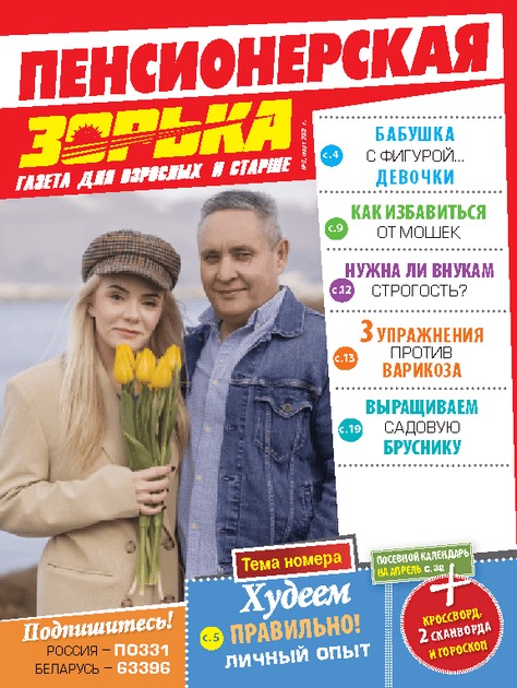 Газета для женщин, которые молоды и активны и в 55, и в 60, и в 70. Истории и письма читательниц, клуб по переписке, знакомства, хобби, рецепты здоровья и долголетия, советы врача, кулинарные рецепты, сканворд, конкурс фотоснимков