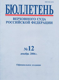 Официальное издание. Публикует постановления Пленума, Президиума, решения и определения судебных коллегий Верховного Суда Российской \nФедерации, постановления президиумов верховных cудов республик, краевых и областных судов, обзоры, обобщения, комментарии по актуальным вопросам судебной практики.