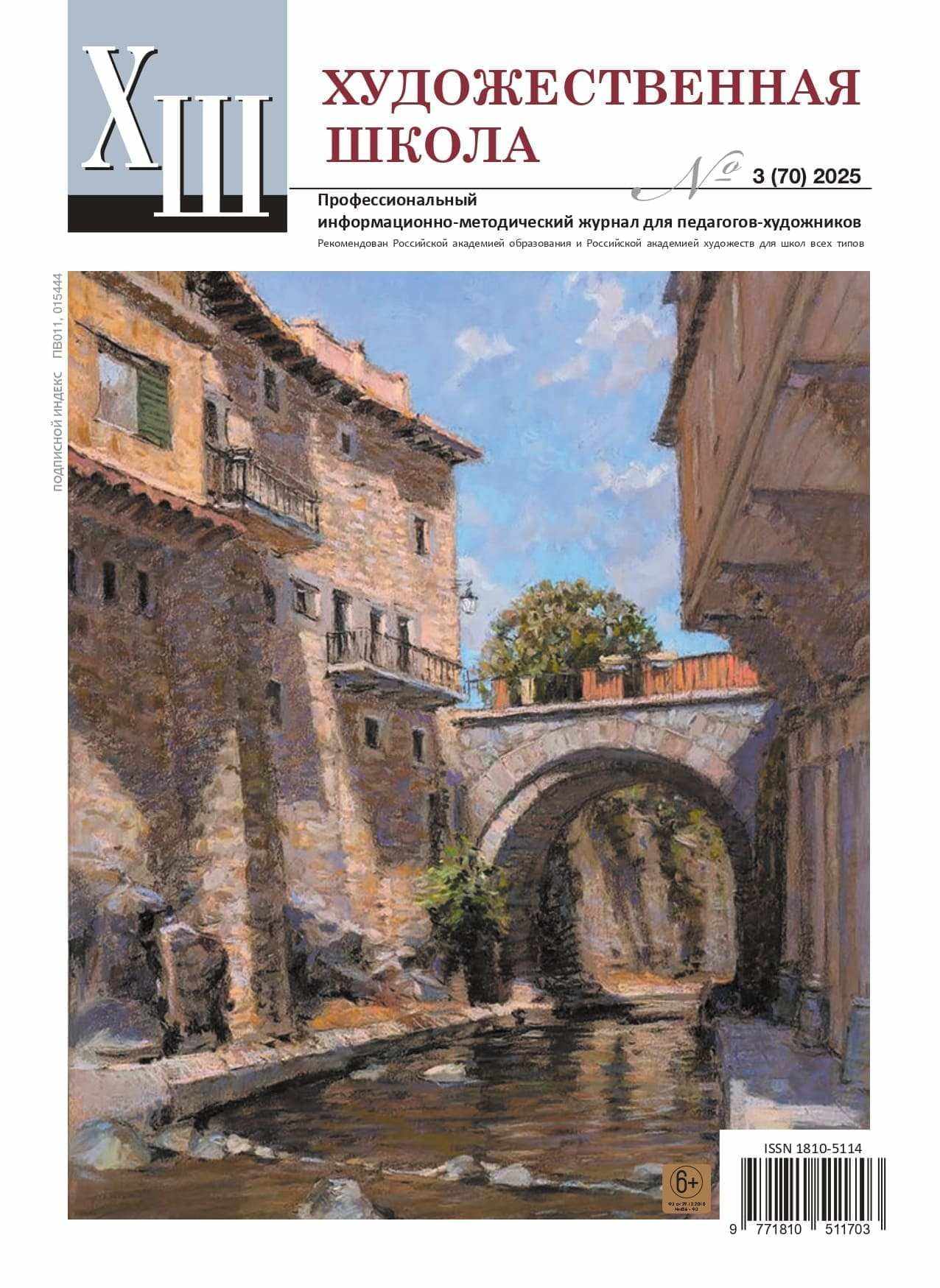 Журнал «Художественная школа» – это периодическое, профессиональное информационно-методическое издание для художников-педагогов. В журнале публикуются труды по педагогический практике и методике, статьи по теории и истории искусства, а также обзоры художественных материалов. Этюд… так звучит тема этого номера, во многом это обусловлено самими материалами, но еще, конечно, это лето, прекрасное время пленэров, путешествий — время перемен. Живописные этюды, несмотря на в определенной степени вспомогательную роль в решении художественных задач, есть неотъемлемая часть творческой жизни художника. Этюды-статьи этого номера есть одновременно самостоятельные произведения, но вместе с тем они дополняют друг друга и составляют внимательное и вдумчивое описание художественного замысла журнала. Формат А4, 48 страниц, 200 г.