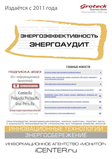 Издается с 2011г. Представителям органов государственной власти и муниципальных образований. Руководителям и специалистам промышленных предприятий. Работникам ЖКХ и энергетики. Специалистам проектных и конструкторских организаций; руководителям и техническим специалистам управляющих и эксплуатационных компаний; дистрибьюторам оборудования для оснащения и эксплуатации зданий; системным интеграторам и инсталляционным компаниям. Регулирование отрасли: госрегулирование; региональные и муниципальные программы и проекты. Инструменты управления: соглашения и партнерства, профессиональные сообщества, итоги отраслевых встреч, энергоаудит, HR, кадровые решения, персоны. Комплексные решения: опыт и решения российских компаний, мировые тенденции, опыт зарубежных стран. Технологии. Оборудование. Продукты. Услуги. Энергетический практикум. Индикаторы развития: аналитика, обзоры, экспертные оценки, проблемы, конфликты, инциденты. www.icenter.ru