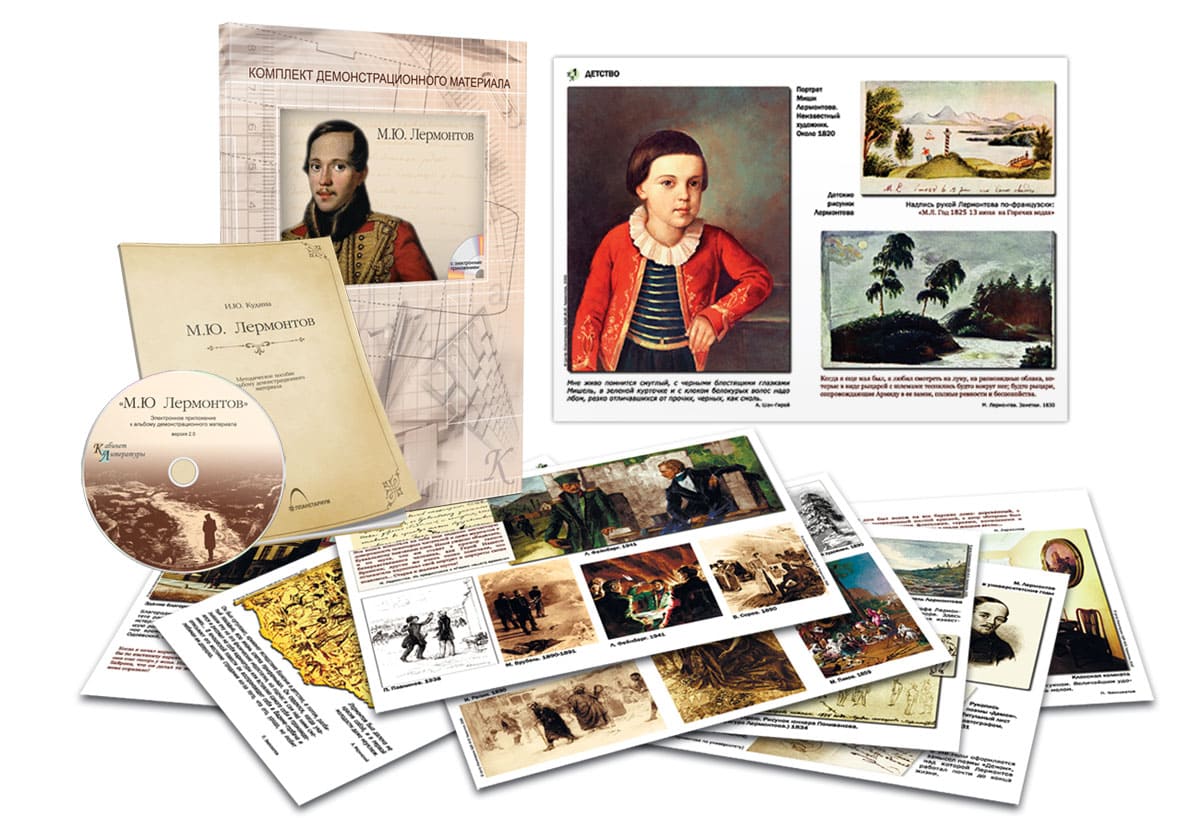 Проект «Кабинет литературы» – издание серии «Альбомов демонстрационных материалов», которые рассказывают о жизни и творчестве русских литераторов. Каждый комплект «Альбома демонстрационных материалов» включает: - 20 цветных постеров (42х30 см); - компакт-диск с электронными презентациями, звуковыми файлами с записями известных актеров и самих писателей и поэтов; - методическое руководство с рекомендациями по изучению материала; - вопросы и задания Изобразительные материалы, объединенные в учебно-наглядные композиции, позволяют выйти за рамки текста и найти общие точки соприкосновения между литературой, живописью, графикой, архитектурой, историей и т. д. Демонстрационные постеры могут быть использованы для постоянных или временных экспозиций при оформлении кабинетов литературы, библиотек, фойе при подготовки праздничных мероприятий, памятных дат, тематических вечеров.